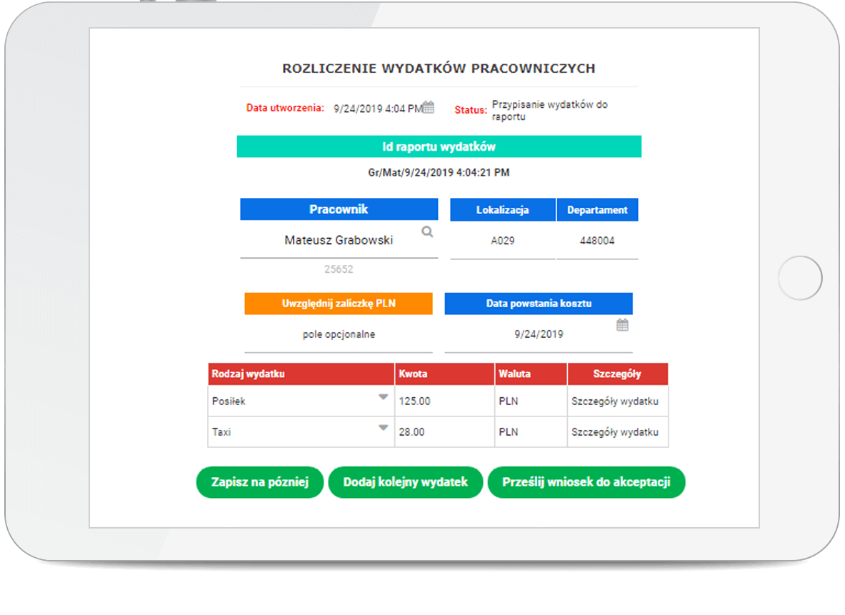 Przydzielaj budżety i limity. Umożliwiaj rozliczanie oraz zwrot kosztów pracownikom na bieżąco za pomocą urządzeń mobilnych
